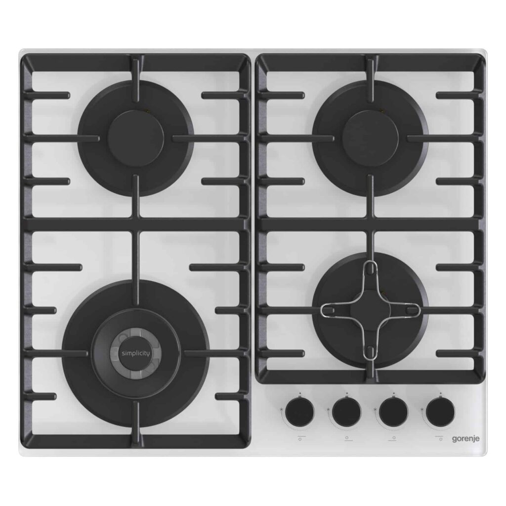כיריים גז 60 ס"מ גימור זכוכית קריסטלית לבנה מבית gorenje דגם GTW641W